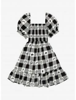 HUNIVERS Her Universe Disney The Nightmare Before Christmas Face Portraits Gingham Smocked Dress